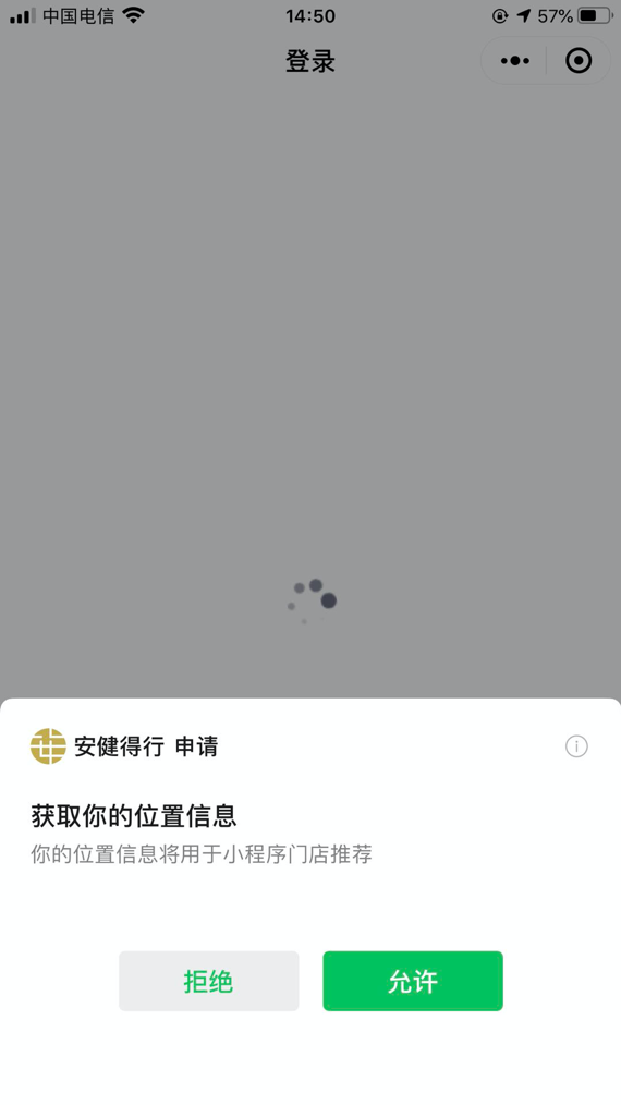 1、先获取用户所在位置,方便为用户提供更好的就近推荐服务。小程序内会马上跳出微信位置授权,请您点击右侧“允许”按钮,小程序会自动拉取您的位置信息。